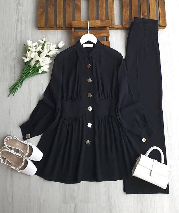 LUYBE BELİ DİKİŞLİ BÜYÜK DÜĞMELİ TUNİK 5696-01-SİYAH