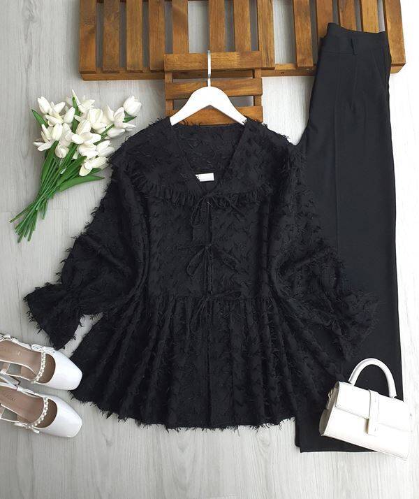 MATZEL ÖNÜ BAĞCIKLI PÜSKÜLLÜ KISA CEKET 3228-01-SİYAH