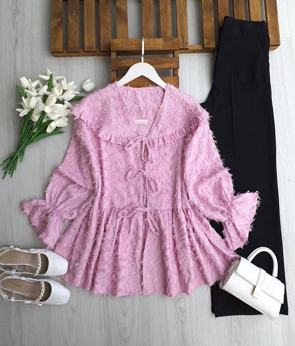 MATZEL ÖNÜ BAĞCIKLI PÜSKÜLLÜ KISA CEKET A6-6-3228-05-PUDRA