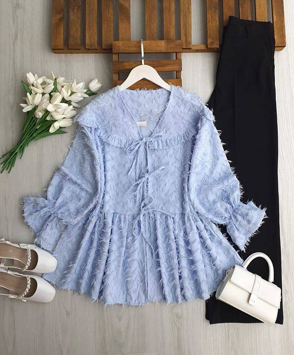 MATZEL ÖNÜ BAĞCIKLI PÜSKÜLLÜ KISA CEKET 3228-10-MAVİ