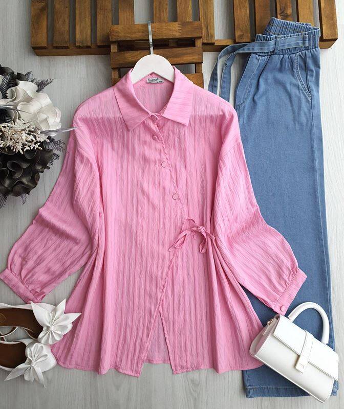 MEDSA ÇAPRAZ DÜĞMELİ YAN BAĞLAMALI GÖMLEK TUNİK C6-5536-05-PUDRA