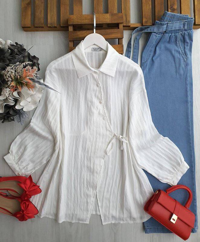 MEDSA ÇAPRAZ DÜĞMELİ YAN BAĞLAMALI GÖMLEK TUNİK C6-5536-20-BEYAZ