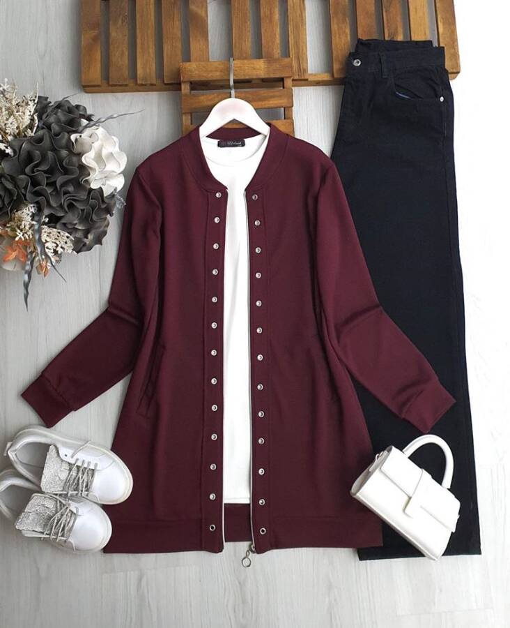 MERV KUŞGÖZÜ FERMUARLI KAP SIFIR KOL İÇ TUNİK TAKIM A6-1-3215-04-BORDO