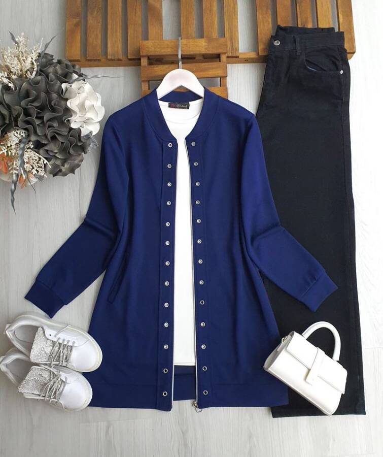 MERV KUŞGÖZÜ FERMUARLI KAP SIFIR KOL İÇ TUNİK TAKIM A6-1-3215-12-LACİVERT