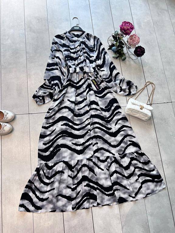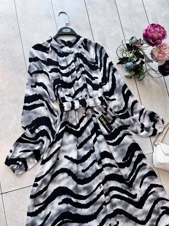 MEYLA KEMERLİ DESENLİ ÖNÜ DÜĞMELİ ELBİSE D2-2304-26-GRİ