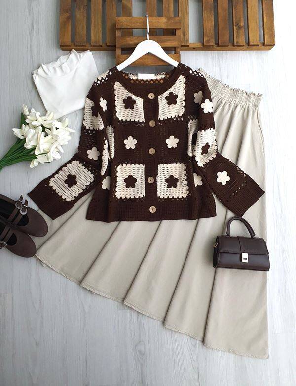 MOFD AJURLU NAKIŞLI DOKUMA ÖRGÜ HIRKA 8201-37-KAHVE