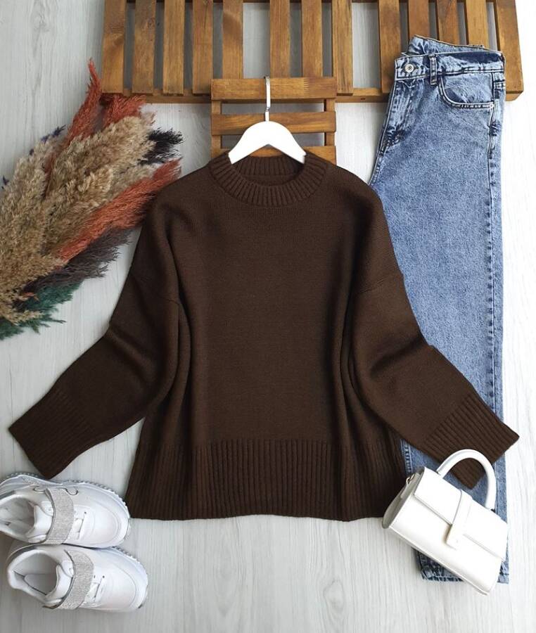 MOLGU RİBANALI SALAŞ KAZAK B10-3-8191-37-KAHVE