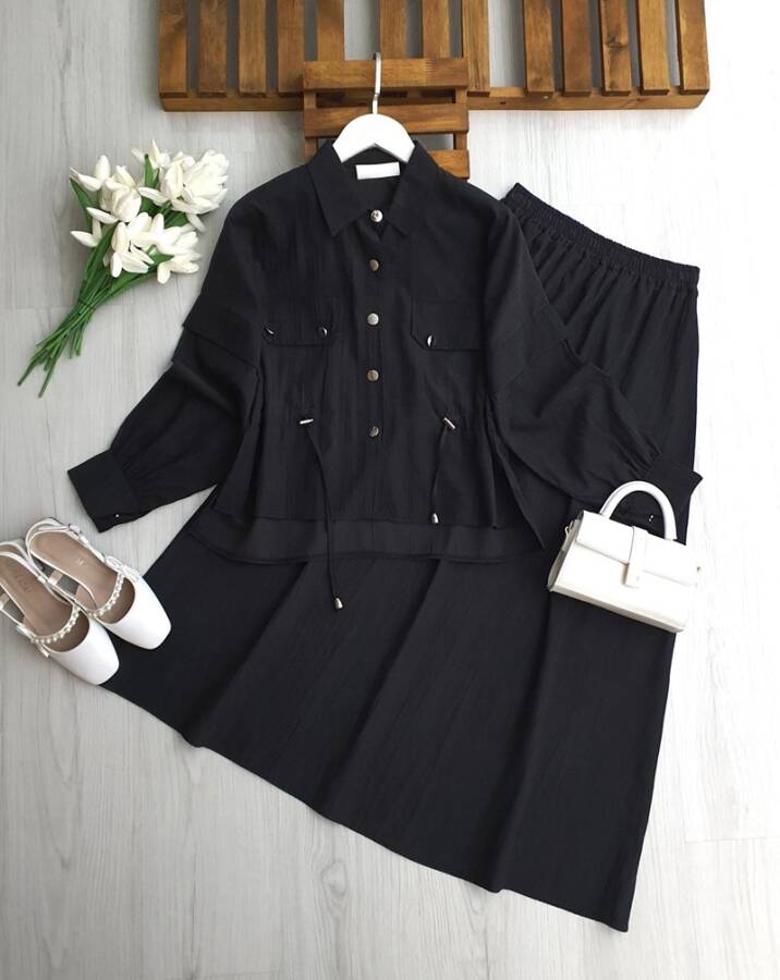 MOVES CEP KAPAKLI BELİ İPLİ ETEKLİ TAKIM B2-2-1717-01-SİYAH