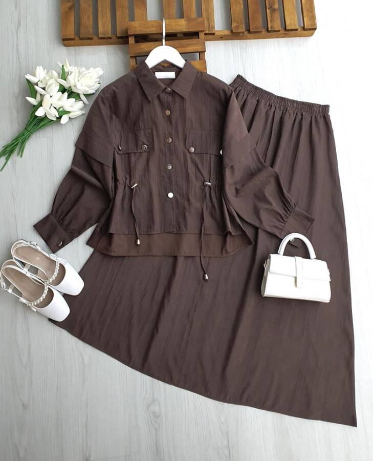 MOVES CEP KAPAKLI BELİ İPLİ ETEKLİ TAKIM B2-2-1717-37-KAHVE