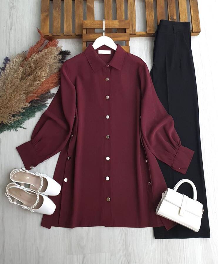 MOVES YANLARI DÜĞMELİ SALAŞ TUNİK 5670-04-BORDO