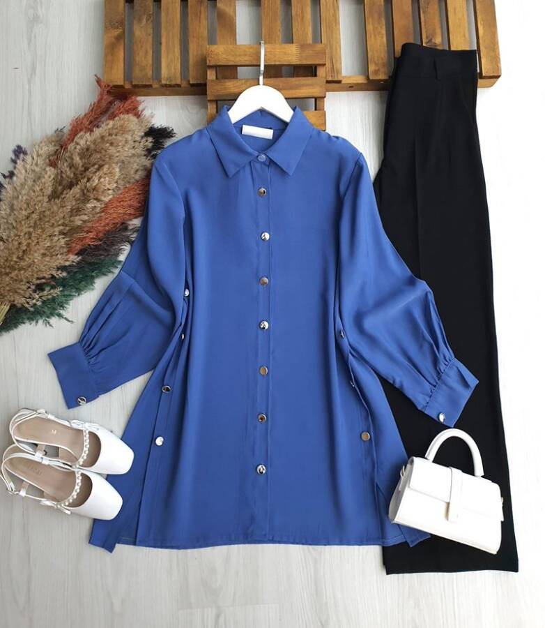 MOVES YANLARI DÜĞMELİ SALAŞ TUNİK B1-1-5670-11-İNDİGO