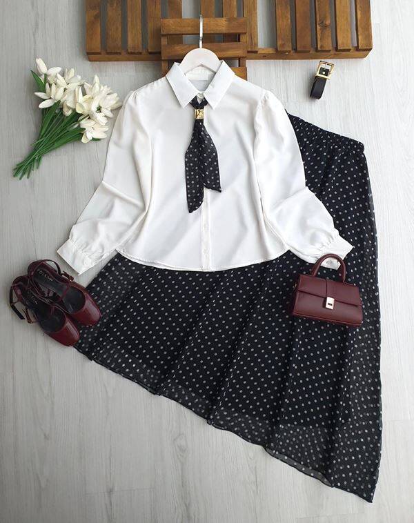 MUGDE FULARLI GÖMLEK DERİ KEMERLİ ASTARLI ŞİFON ETEK TAKIM 1750-01-SİYAH