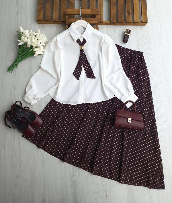MUGDE FULARLI GÖMLEK DERİ KEMERLİ ASTARLI ŞİFON ETEK TAKIM 1750-18-MÜRDÜM