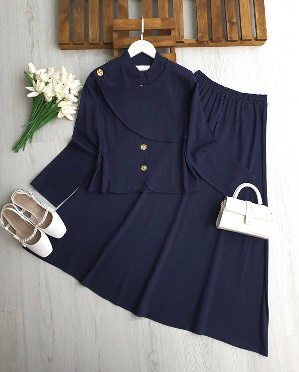 NAKSE ASİMETRİK PARÇALI GOLD DÜĞMELİ KETEN TAKIM 5712-12-LACİVERT