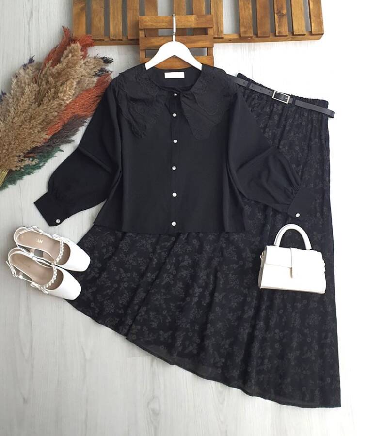 NALİ TÜL YAKALI GÖMLEK 5665-01-SİYAH