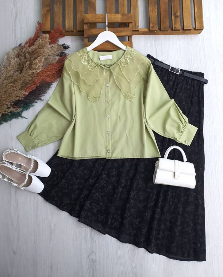 NALİ TÜL YAKALI GÖMLEK 5665-07-YEŞİL