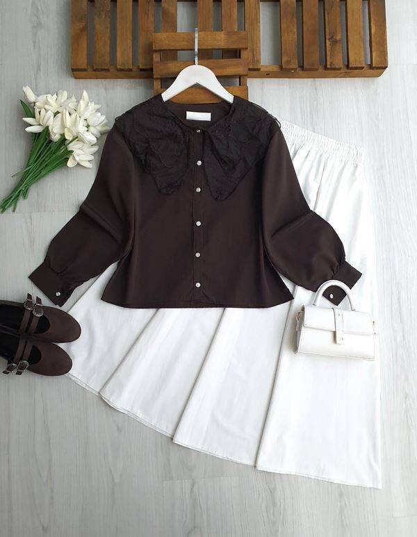 NALİ TÜL YAKALI GÖMLEK 5665-37-KAHVE