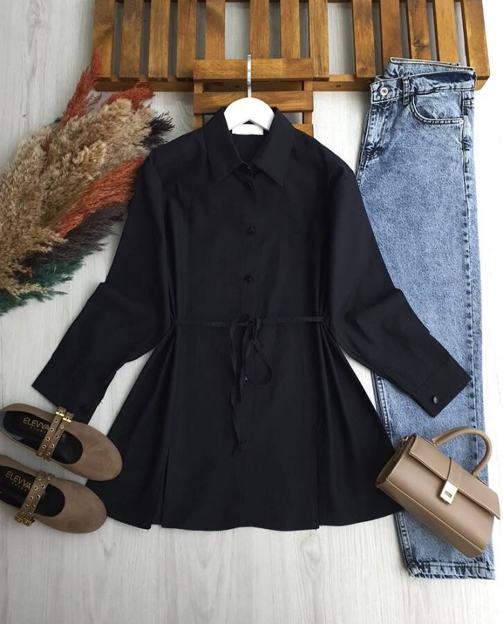 NALKDA ÖNÜ YIRTMAÇLI BELİ İPLİ GÖMLEK TUNİK B2-6-5657-01-SİYAH