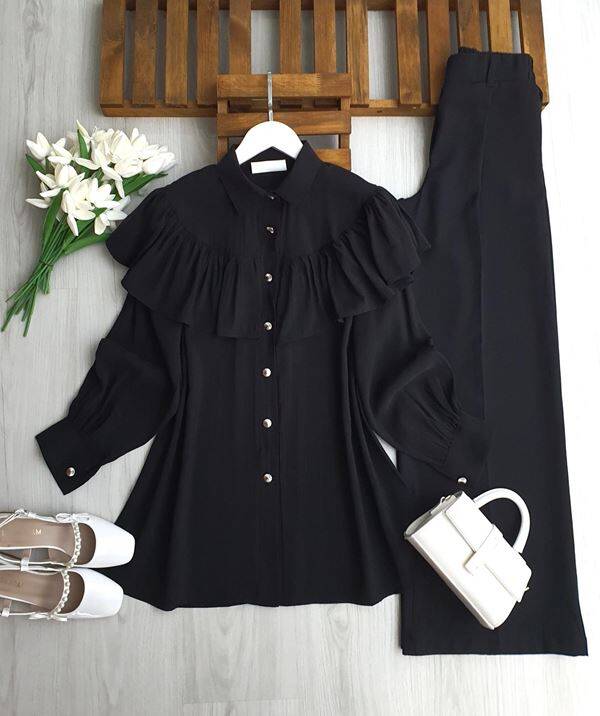 NASAB ÖN VE ARKA FIRFIRLI PELERİN GÖMLEK TUNİK B2-1-5693-01-SİYAH