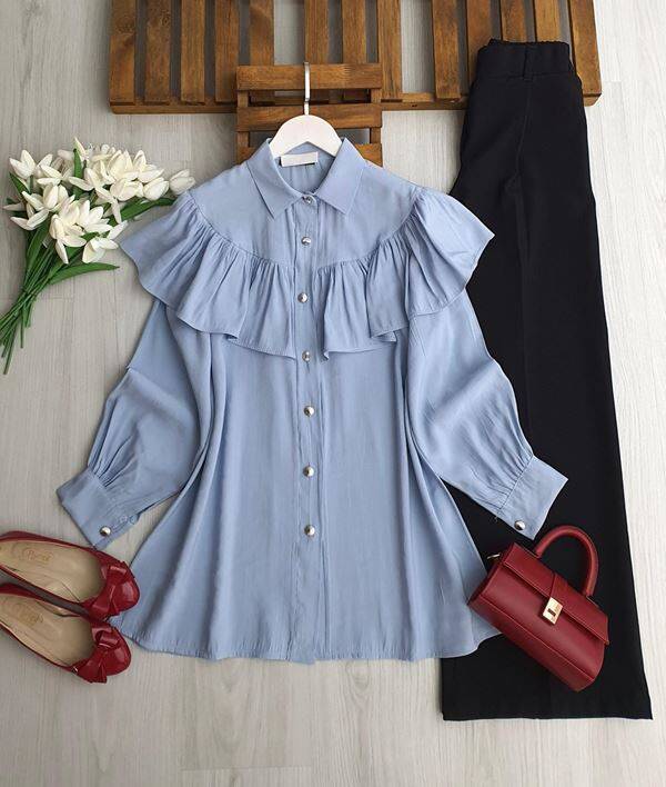 NASAB ÖN VE ARKA FIRFIRLI PELERİN GÖMLEK TUNİK B2-1-5693-10-MAVİ