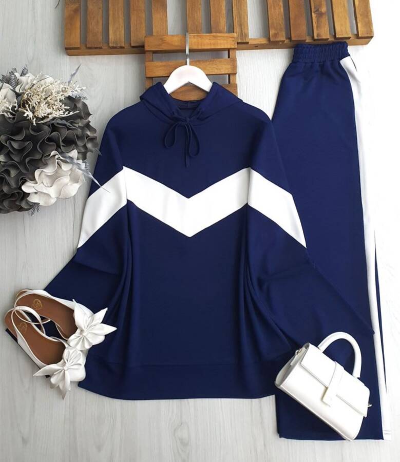 NEFS KOLDAN ÖNE BEYAZ GARNİLİ PANTOLON ŞERİTLİ TAKIM 1681-12-LACİVERT