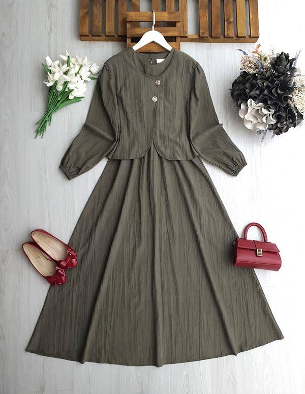 NENGA İKİ DÜĞMELİ CEKET BELİ LASTİKLİ ELBİSE TAKIM A6-4-2418-09-HAKİ