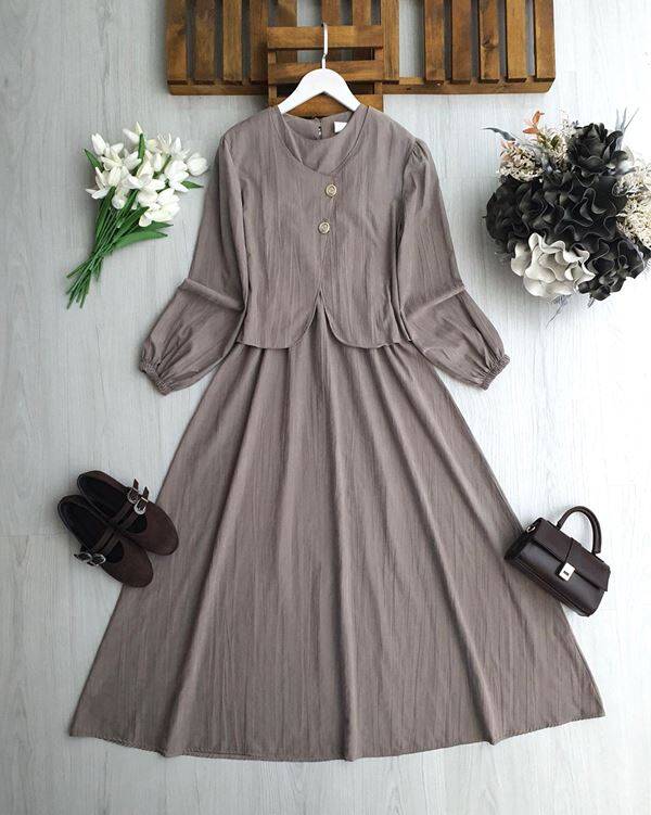 NENGA İKİ DÜĞMELİ CEKET BELİ LASTİKLİ ELBİSE TAKIM 2418-25-VİZON