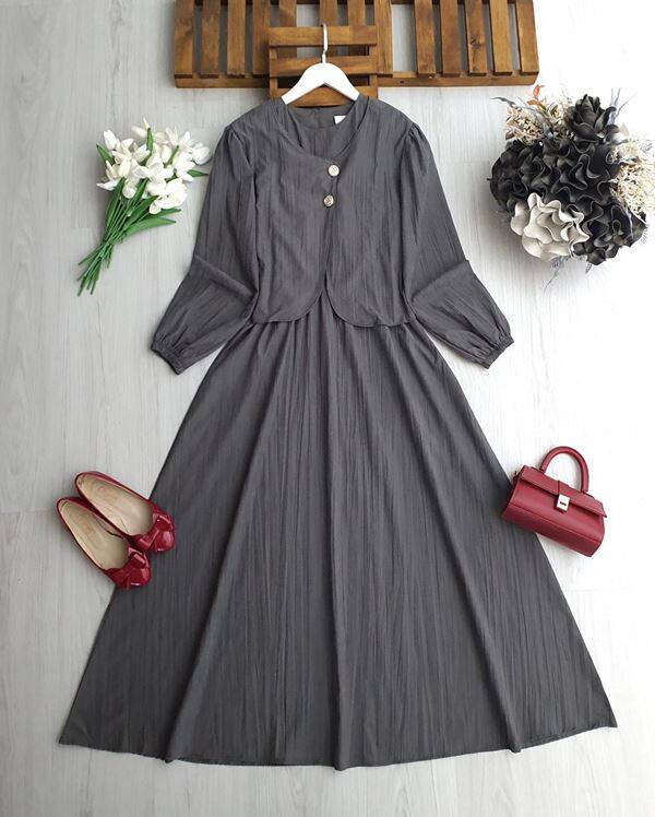 NENGA İKİ DÜĞMELİ CEKET BELİ LASTİKLİ ELBİSE TAKIM A6-4-2418-58-FÜME