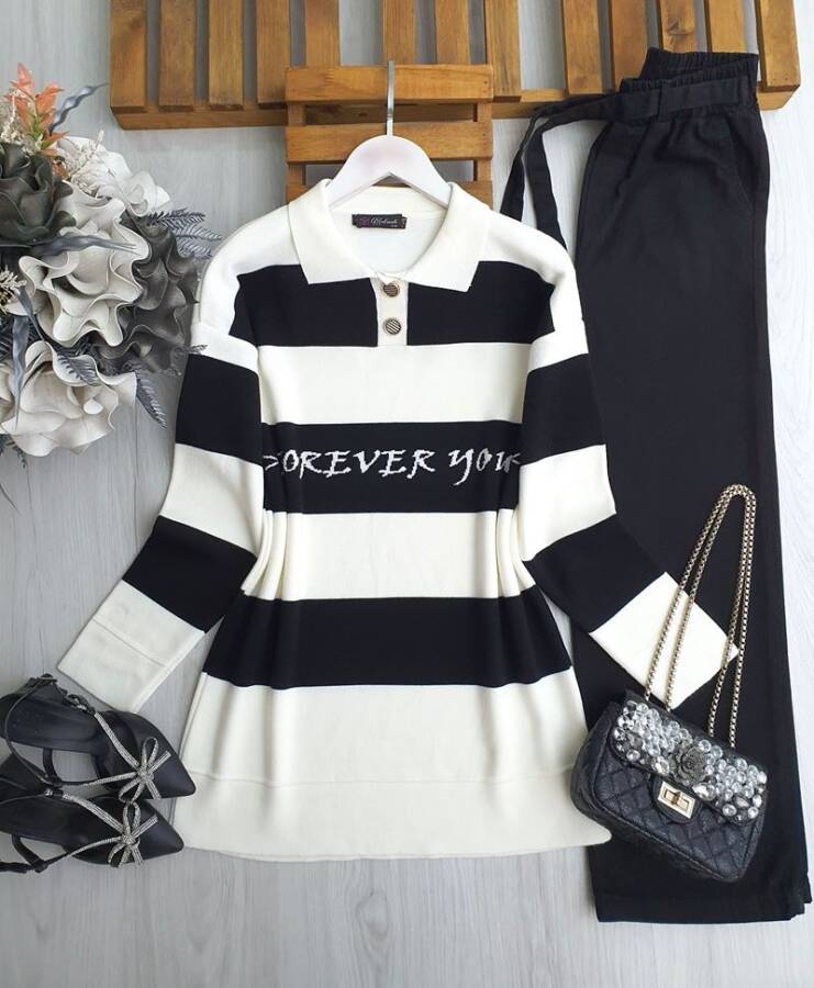 NİGDA YAZILI YAKALI DÜĞMELİ TRİKO TUNİK 8147-01-SİYAH