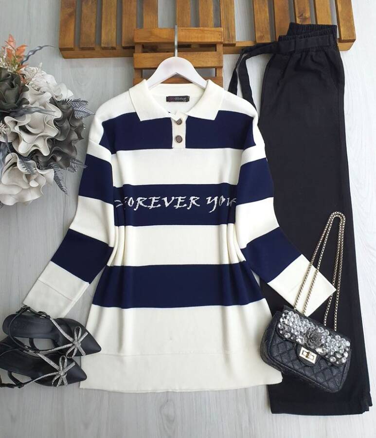 NİGDA YAZILI YAKALI DÜĞMELİ TRİKO TUNİK 8147-12-LACİVERT