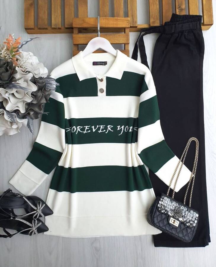 NİGDA YAZILI YAKALI DÜĞMELİ TRİKO TUNİK A3-1-8147-27-ZÜMRÜT