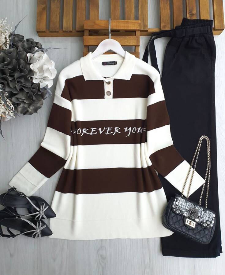 NİGDA YAZILI YAKALI DÜĞMELİ TRİKO TUNİK 8147-37-KAHVE