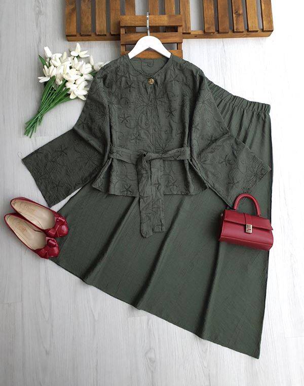 NODH DESENLİ TEK DÜĞMELİ CEKET ETEK TAKIM 1745-09-HAKİ