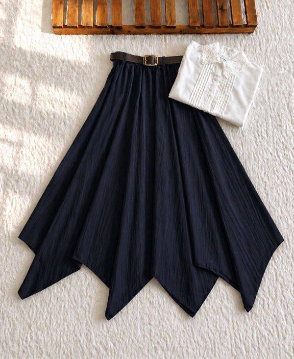 NUBES ASİMETRİK KESİM DERİ KEMERLİ KİLOŞ ETEK 6108-01-SİYAH