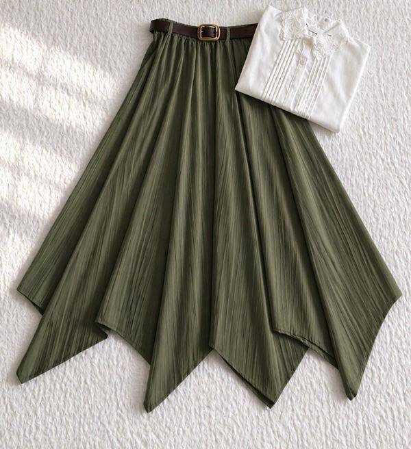 NUBES ASİMETRİK KESİM DERİ KEMERLİ KİLOŞ ETEK 6108-09-HAKİ