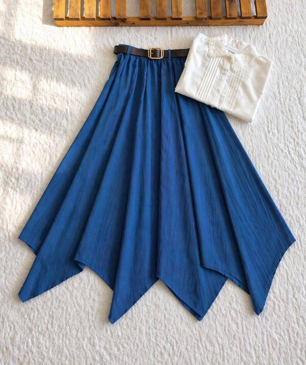 NUBES ASİMETRİK KESİM DERİ KEMERLİ KİLOŞ ETEK 6108-11-İNDİGO