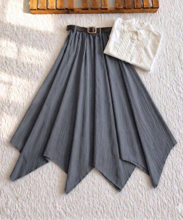 NUBES ASİMETRİK KESİM DERİ KEMERLİ KİLOŞ ETEK 6108-58-FÜME