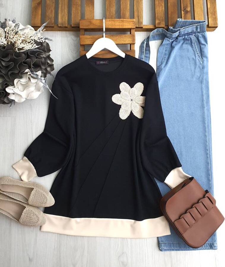 NUFSA NAKIŞLI AKSESUARLI ÇIMALI TUNİK B1-4- 5613-01-SİYAH