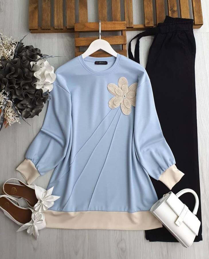 NUFSA NAKIŞLI AKSESUARLI ÇIMALI TUNİK B1-4-5613-10-MAVİ