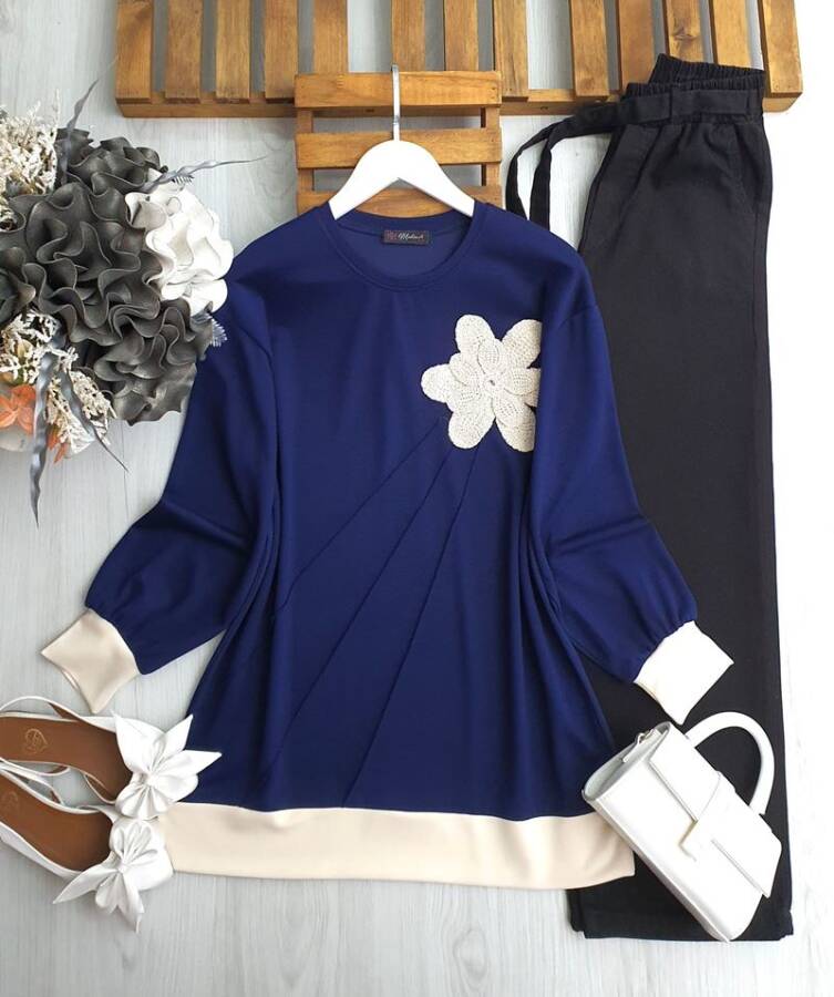 NUFSA NAKIŞLI AKSESUARLI ÇIMALI TUNİK B1-4-5613-12-LACİVERT