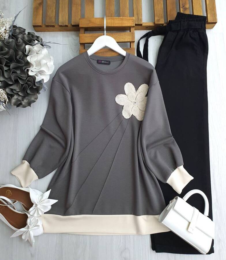 NUFSA NAKIŞLI AKSESUARLI ÇIMALI TUNİK B3-4-5613-58-FÜME