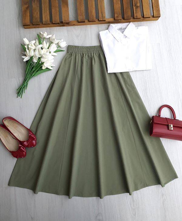 NUVAE BELİ LASTİKLİ CEPLİ KİLOŞ ETEK A4-2-6117-09-HAKİ