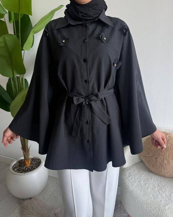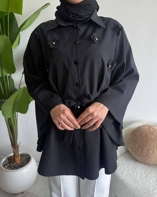 OCPA AKSESUARLI BELİ KEMERLİ PANÇO GÖMLEK 5709-01-SİYAH