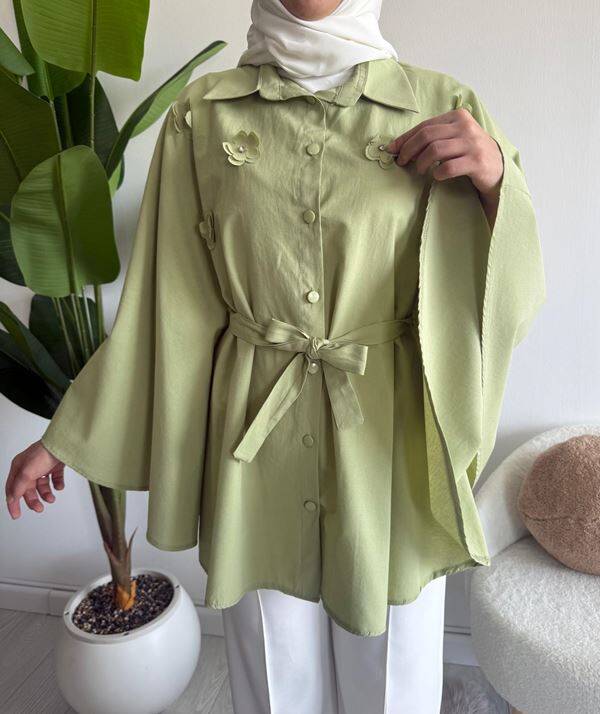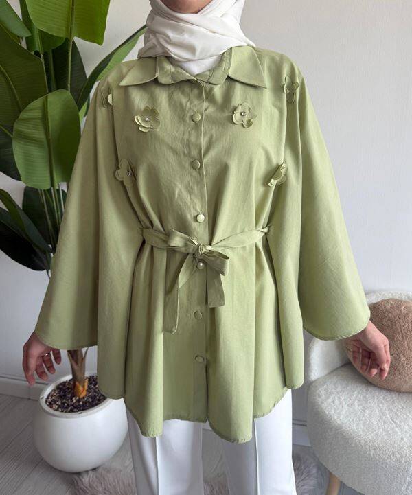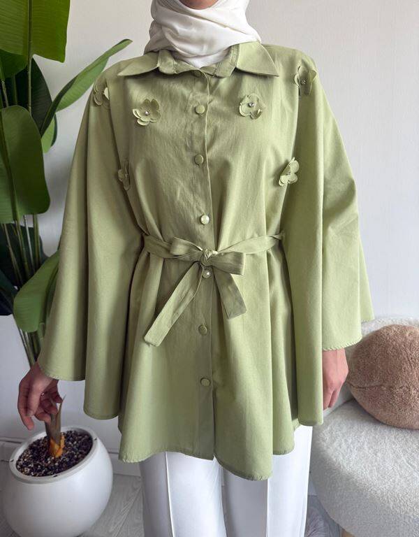 OCPA AKSESUARLI BELİ KEMERLİ PANÇO GÖMLEK 5709-07-YEŞİL