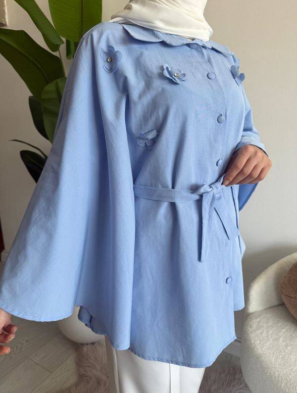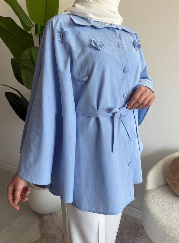 OCPA AKSESUARLI BELİ KEMERLİ PANÇO GÖMLEK 5709-10-MAVİ