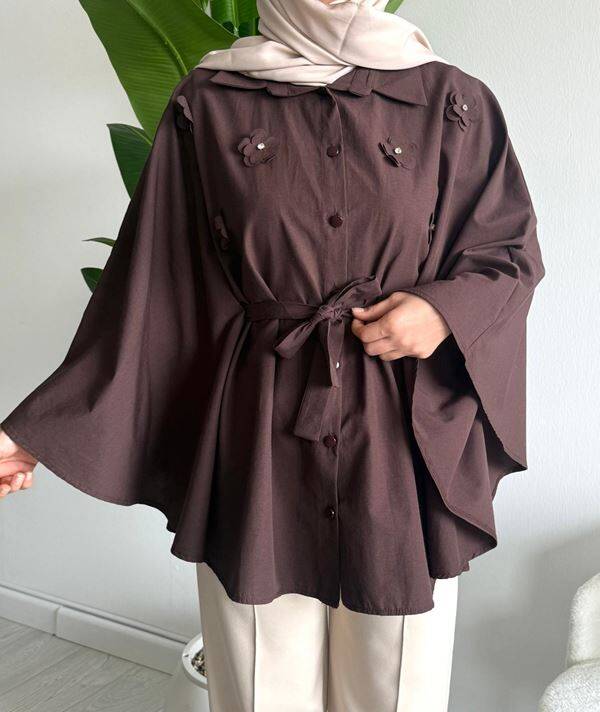 OCPA AKSESUARLI BELİ KEMERLİ PANÇO GÖMLEK 5709-37-KAHVE
