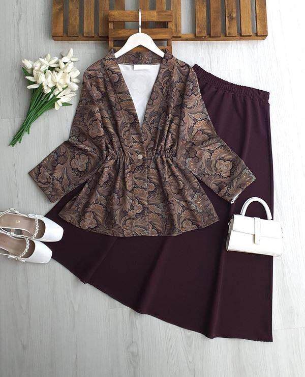 ODNUL TEK DÜĞME SULU DESEN CEKET ETEKLİ TAKIM 1751-18-MÜRDÜM