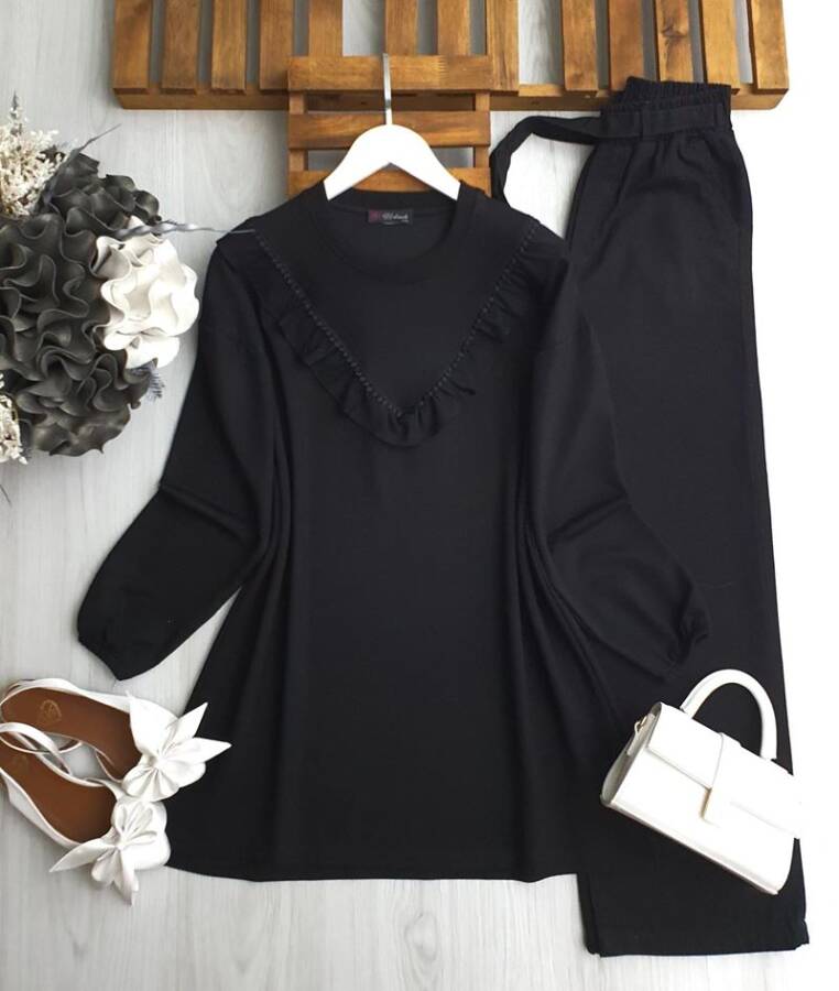 ODSGA İŞLEMELİ V FIRFIRLI TUNİK B9-2-5620-01-SİYAH