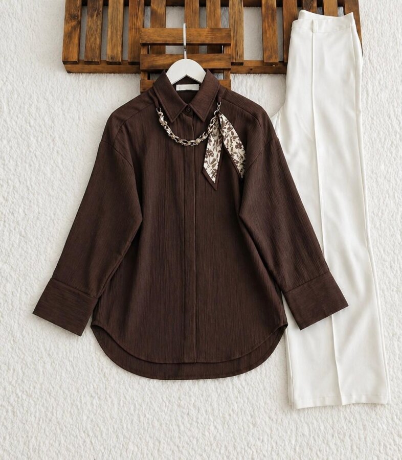 OHLEN FULARLI KOLYELİ GÖMLEK TUNİK 5733-37-KAHVE