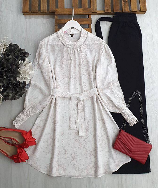 OLANE GİPE KOL TAŞ BİYELİ GENİŞ YAKA DESENLİ ÇİLEK TUNİK C9-5507-34-BEJ